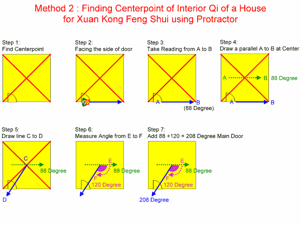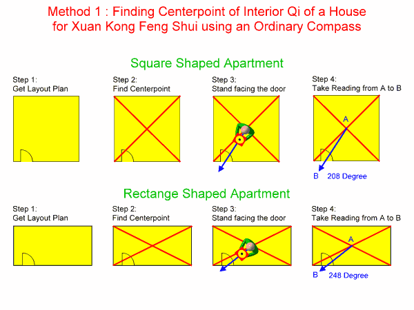 The above readings are usually meant for apartment / flat. The centerpoint is still required for a building or landed property. As the eight house or flying star template needs to be superimposed onto the layout.